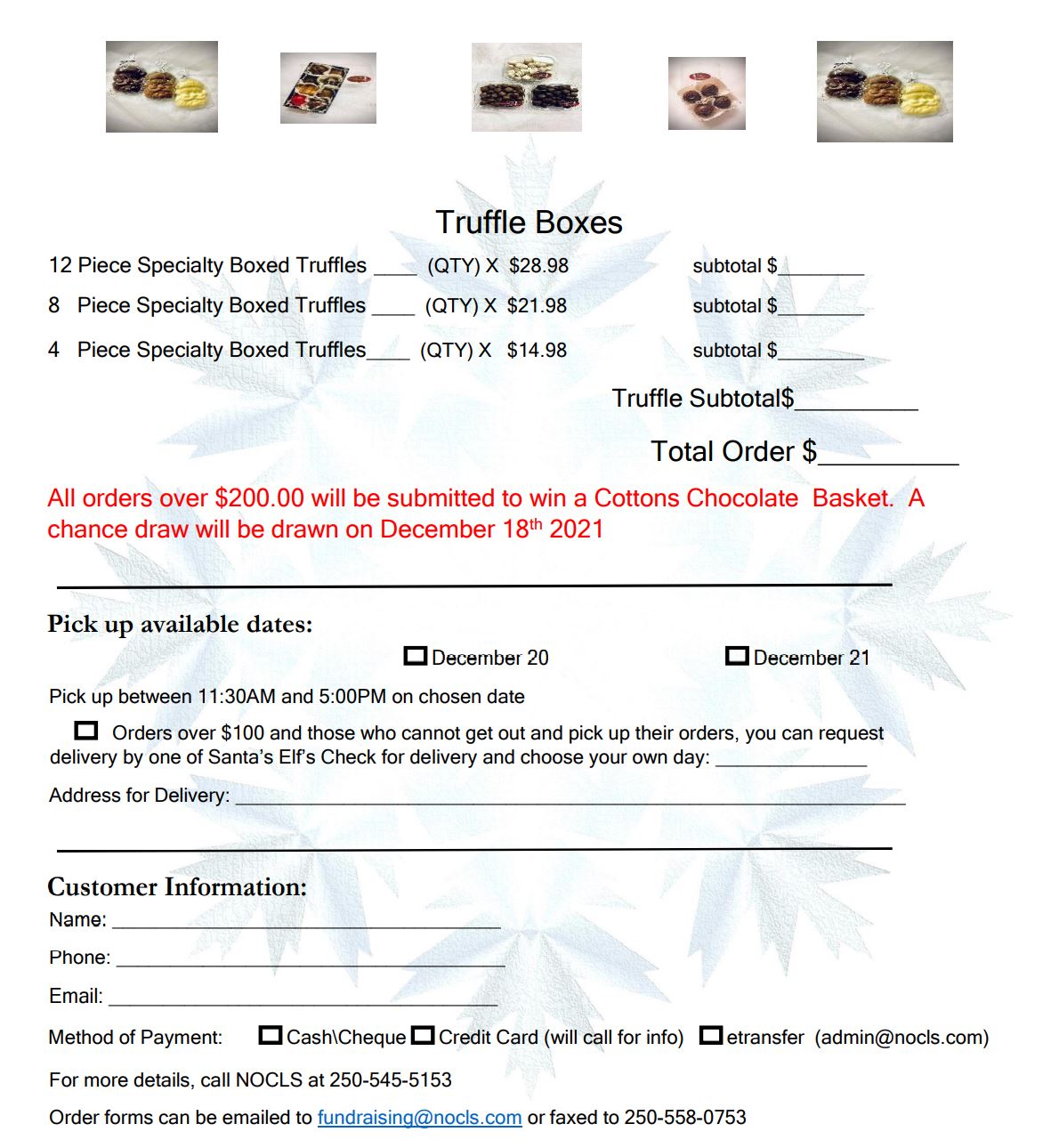 handcrafted Belgian chocolates made right here in Vernon. Order any of our Christmas chocolate packages